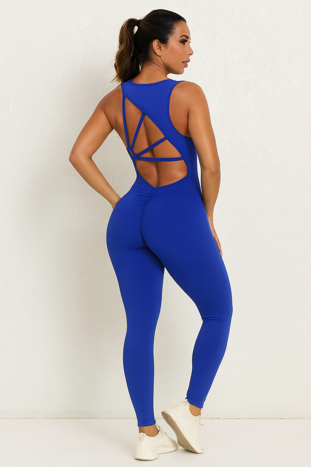 ENTERIZO CON ESPALDA DECUBIERTA CON TIRAS, SOSTEN INTEGRADO FRONT TWIST Y FRUNCIDO EN EL GLUTEO PARA MAYOR PROYECCIÓN.