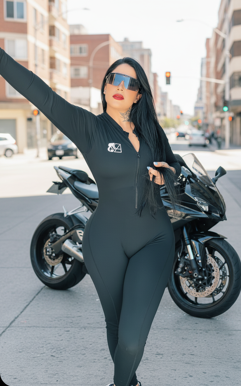 Enterizo de compresión total con diseño ajustado que realza la figura y brinda soporte. sujetador integrado, presenta un escote abierto en la espalda que resalta con actitud y sensualidad, y un zipper frontal que permite regular el estilo y nivel de cobertura. Confeccionado en tela elástica y cómoda