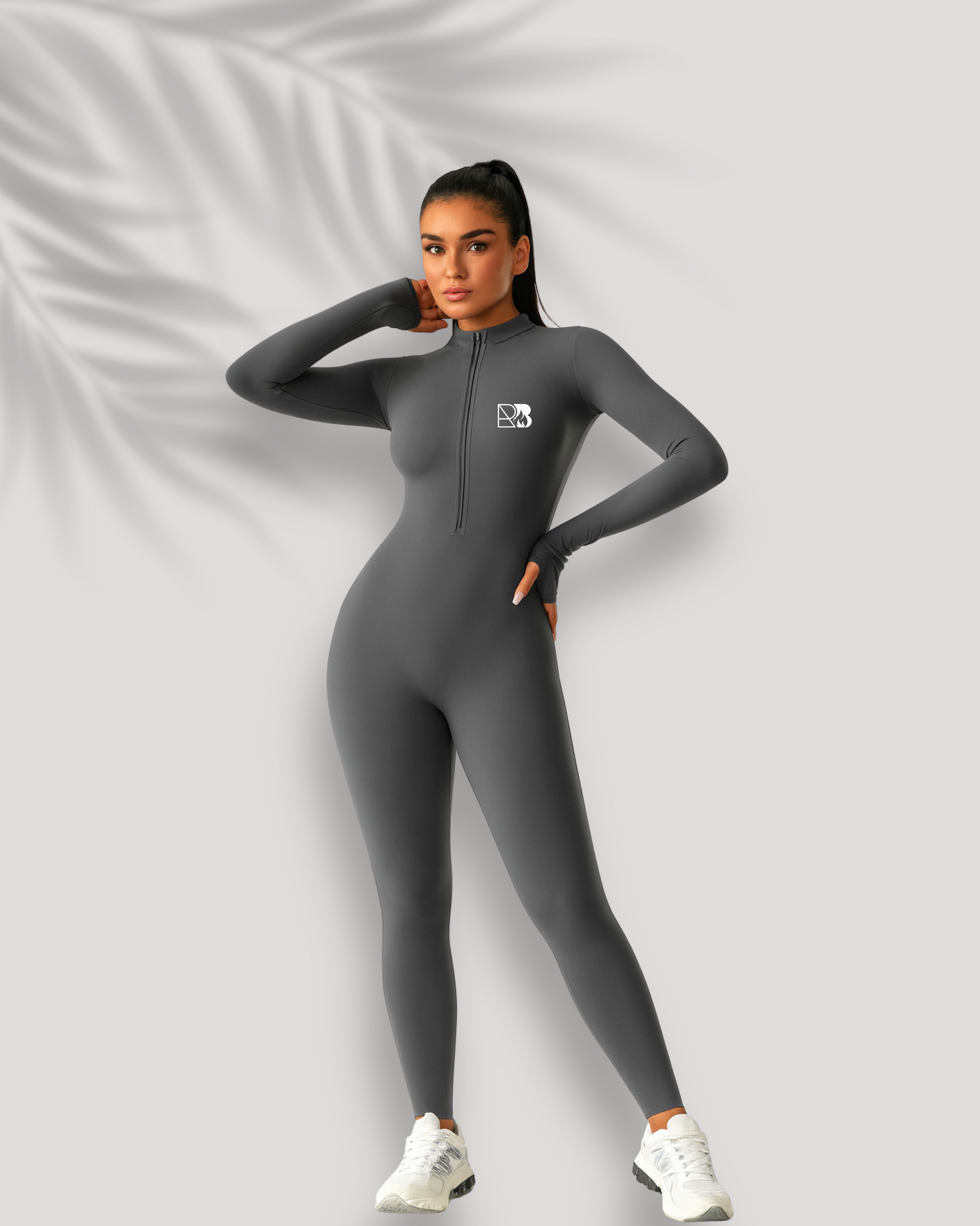 ENTERIZO LARGO completamente cubierto, zipper frontal para ajustar escote.