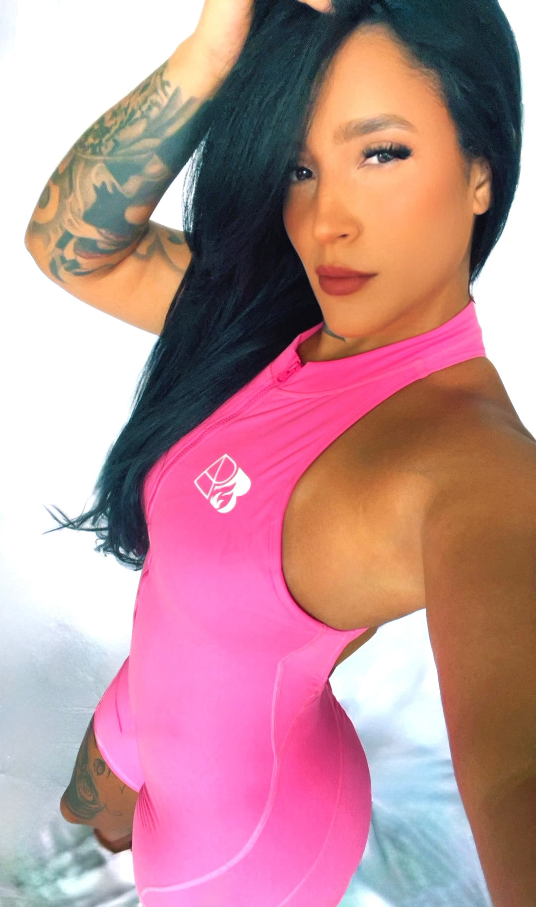Un enterizo corto en tono rosa vibrante que refleja actitud, confianza y estilo. Perfecto para destacar sin esfuerzo y llevar tu poder femenino con orgullo.