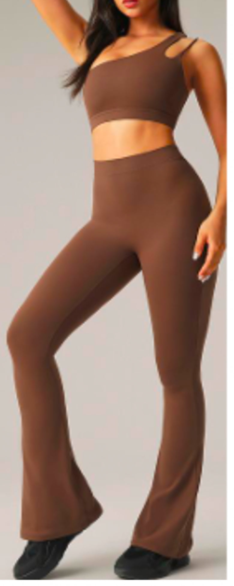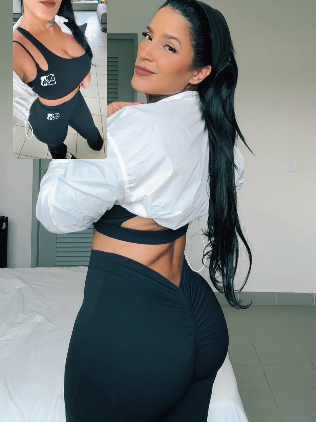 Set de dos piezas. Top con sostén integrado y leggings con corte en V atrás para mayor proyección